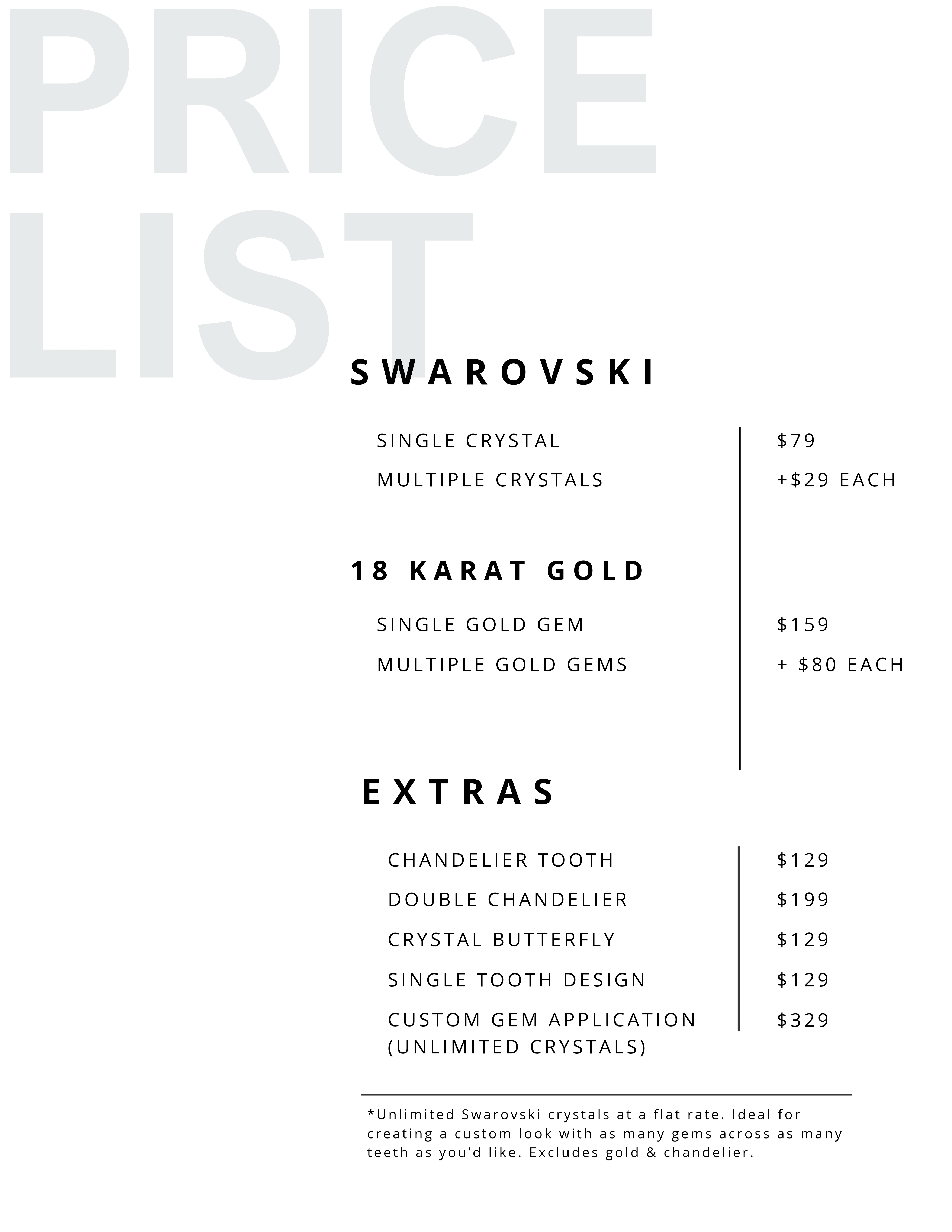 Tooth gems are tiny genuine Swarovski crystals, diamonds, opals, or 18-22 karat gold charms that are temporarily applied to the surface of your tooth using dental composite (the same material dentists use for fillings and attaching braces or Invisalign buttons, so it’s safe and non-invasive or permanent). Gems are a super quick and easy way to try something new and different with low commitment.