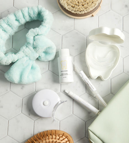Place the whitening gel into the tray (top & bottom), pop it in your mouth, and turn on the LED light.